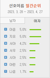 유행하는 이름이나 인기순위에 있는 이름을 알아보고 싶을 때~